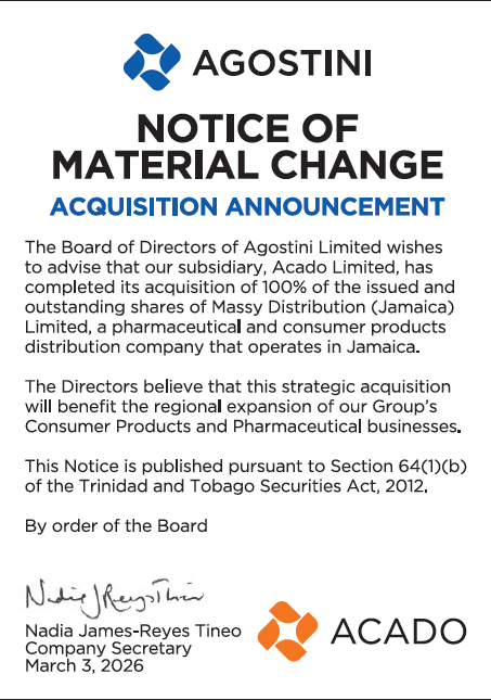 Notice of Material Change to Shareholders: Acquisitions of Collins Limited and Carlisle Laboratories Limited.