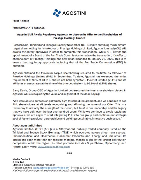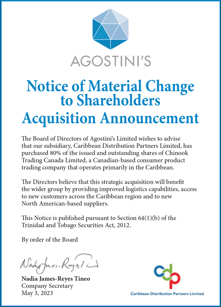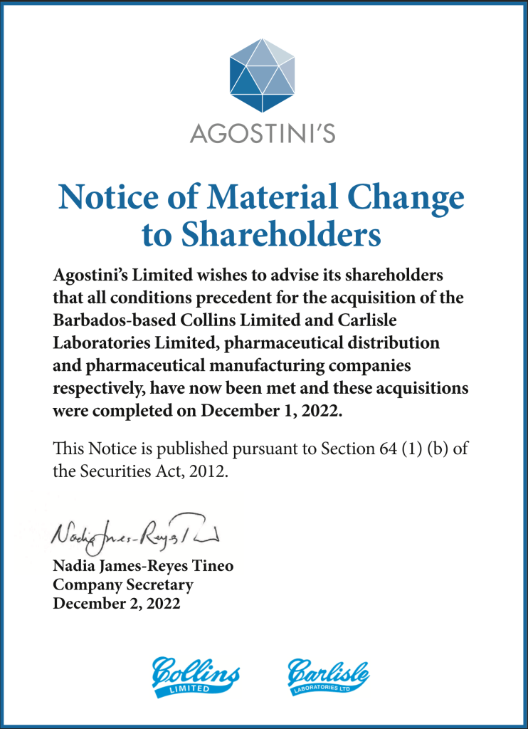 Notice of Material Change to Shareholders: Acquisitions of Collins Limited and Carlisle Laboratories Limited.