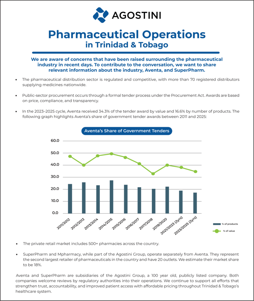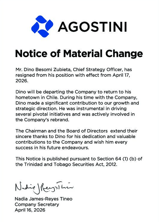 Material NoticesAgostini’s Limited is pleased to announce the signing of a Sale and Purchase Agreement which upon closing would give the Group a strong position in the pharmaceutical market in the Dutch Caribbean.